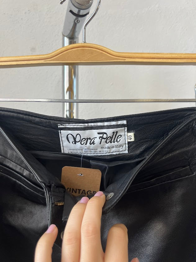 Pantalón de cuero negro Vera Pelle (Made in Italy)