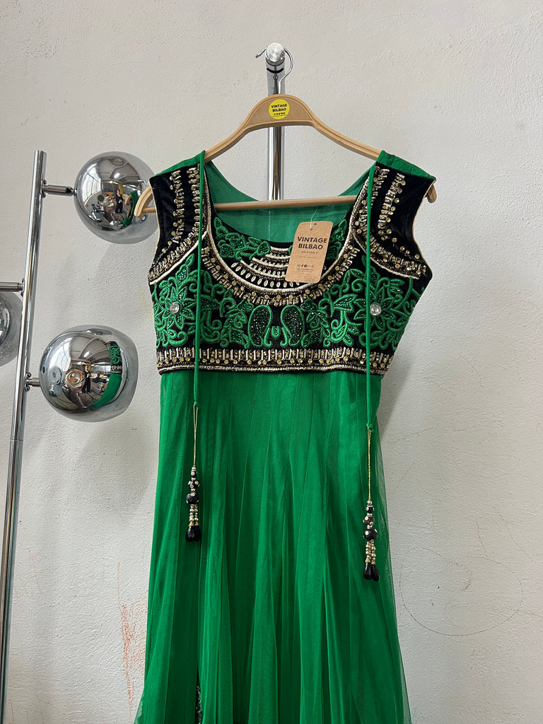 Vestido verde de fiesta con bordados